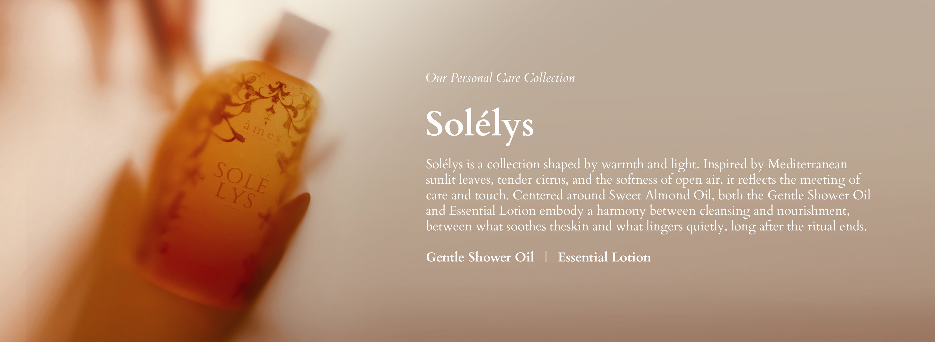 Our Personal Care collection, Solélys, is a collection shaped by warmth and light. Inspired by Mediterranean sunlit leaves, tender citrus, and the softness of open air, it reflects the meeting of care and touch.