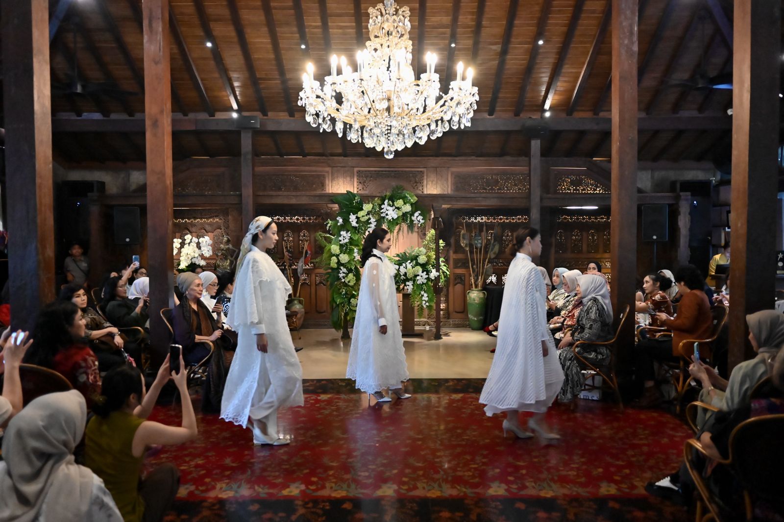 Held within the architectural warmth of Javanese wood interiors and natural light, the gathering unfolded as an intimate presentation of craft, silhouette, and material dialogue. The setting allowed each garment to be experienced in proximity — not as spectacle, but as presence.